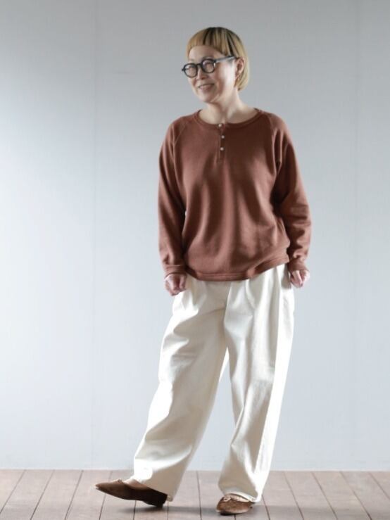 リネンコットン特有の落ち感のある素材感が気持ちよく、楽に着ていただける一枚です。