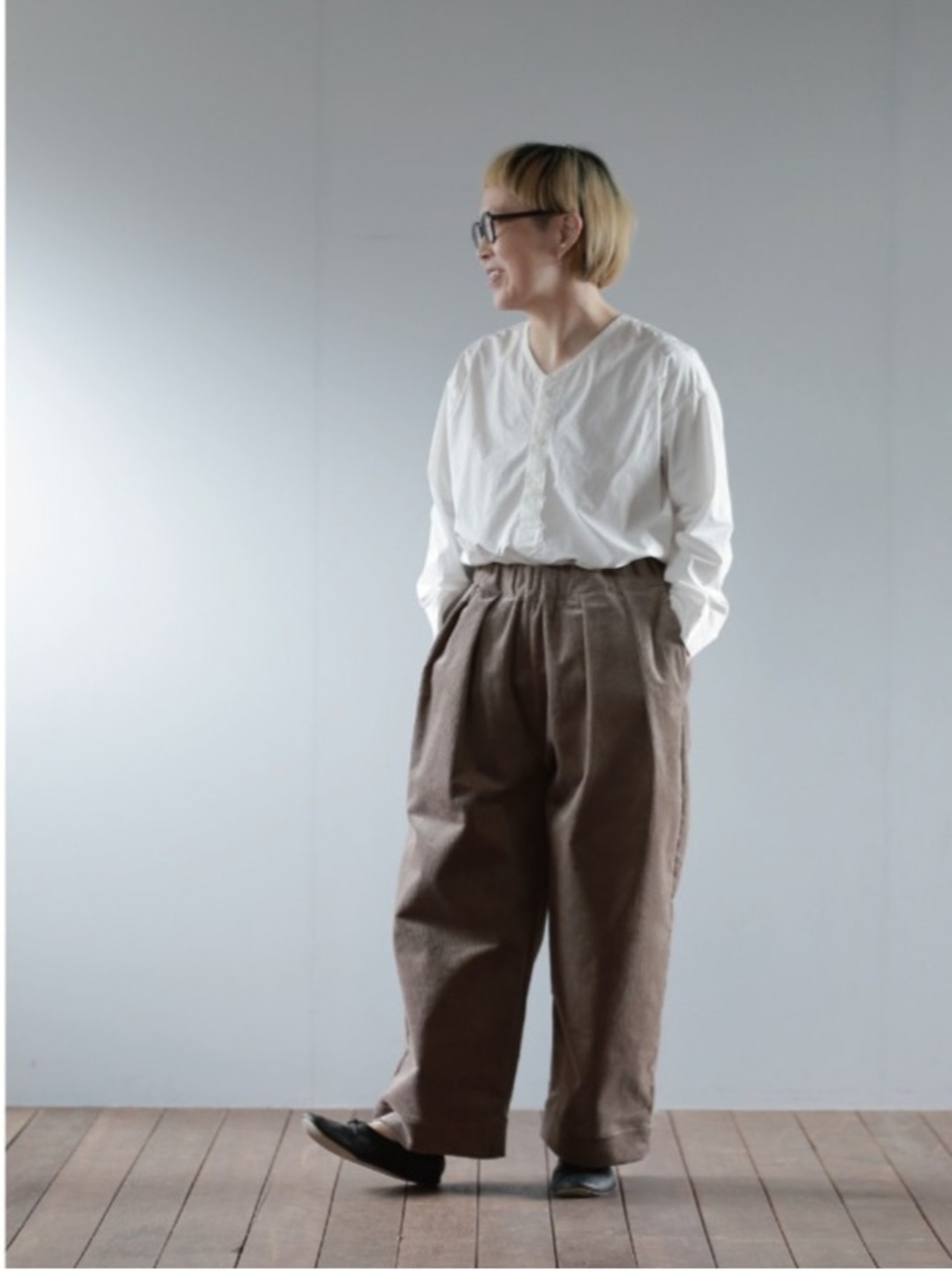 ソフトな中うねのストレッチコーデュロイを使用した2タックイージーパンツ(継続型)。