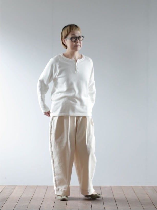 しっかりとした肉感のコットン裏パイルを使用したヘンリーネックロンT。