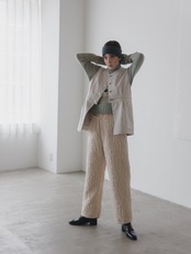 アウターの中に合わせてベストの裾を出し、重ね着のコントラストで遊んでみたり。