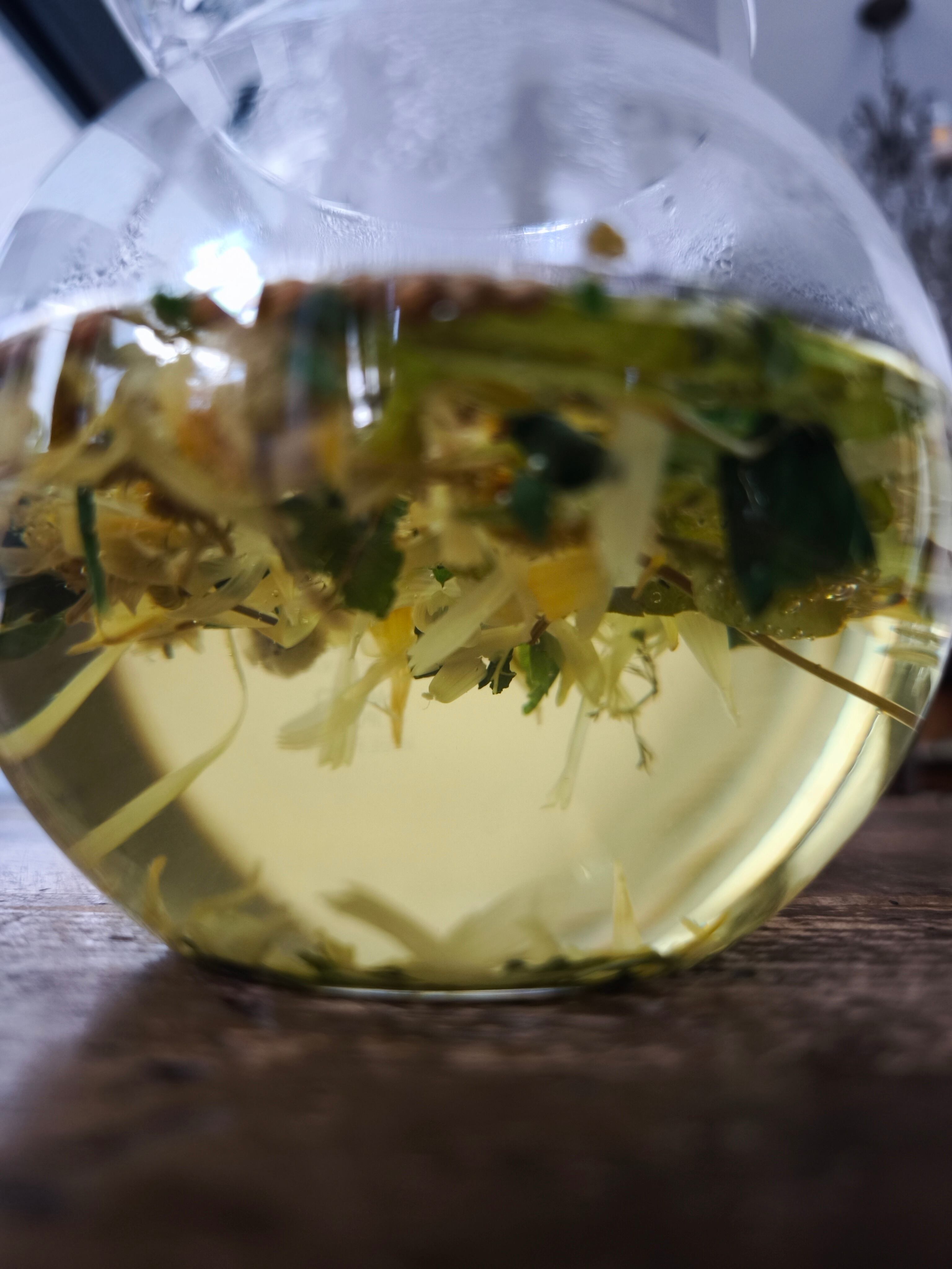 ポットにハーブを入れて沸かしたての熱湯を注ぎます。