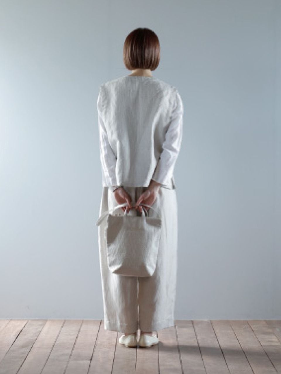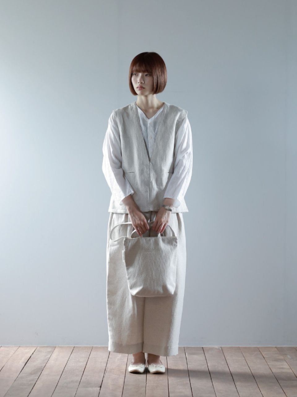織り柄が特徴的なリネンポリエステル混素材を使用したギャザーサコッシュ。