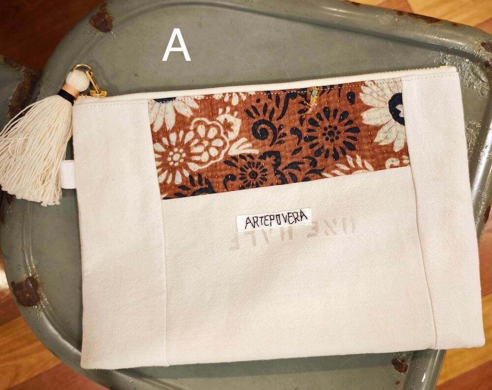 ARTE POVERA ARTEA-26SP44 インドキルトラリー&フランスシーツMIX ポーチ(M)